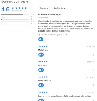 “Produto de ótima durabilidade. Já faz quase um ano que uso o queimador da Distrel nos meus serviços externos (churrasco e eventos), e não tive desgaste significativo. Peças de reposição chegaram rápido também quando precisei.”